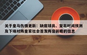 关于皇马伤情更新:缺席球员、复出时间预测及下场对阵皇家社会首发阵容前瞻的信息