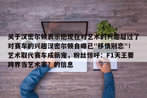 关于汉密尔顿表示他现在对艺术的兴趣超过了对赛车的兴趣汉密尔顿自曝已"移情别恋"!艺术取代赛车成新宠,粉丝惊呼:F1天王要跨界当艺术家?的信息