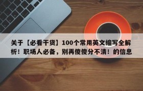 关于【必看干货】100个常用英文缩写全解析!职场人必备,别再傻傻分不清!的信息