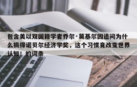 包含美以双国籍学者乔尔·莫基尔因追问为什么摘得诺贝尔经济学奖,这个习惯竟改变世界认知!的词条