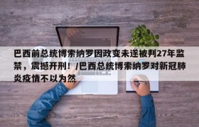 巴西前总统博索纳罗因政变未遂被判27年监禁,震撼开刑!/巴西总统博索纳罗对新冠肺炎疫情不以为然