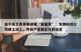 关于格兰奇茅斯迎来“新篇章”:生物科技公司破土动工,开启产业新纪元的信息