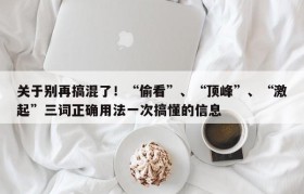 关于别再搞混了!“偷看”、“顶峰”、“激起”三词正确用法一次搞懂的信息