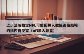 上诉法院裁定NFL可能因黑人教练面临歧视的指控而受审(nfl黑人球星)