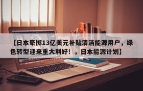 【日本豪掷13亿美元补贴清洁能源用户,绿色转型迎来重大利好!,日本能源计划】