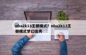 nba2k13王朝模式?nba2k13王朝模式梦幻选秀
