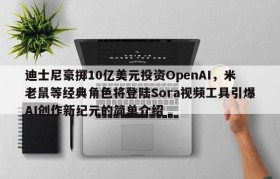 迪士尼豪掷10亿美元投资OpenAI,米老鼠等经典角色将登陆Sora视频工具引爆AI创作新纪元的简单介绍