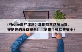 iPhone用户注意:立即检查这项设置,守护你的设备安全!(苹果手机检查安全)