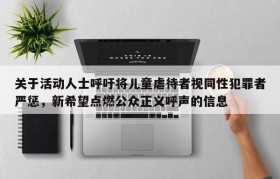 关于活动人士呼吁将儿童虐待者视同性犯罪者严惩,新希望点燃公众正义呼声的信息