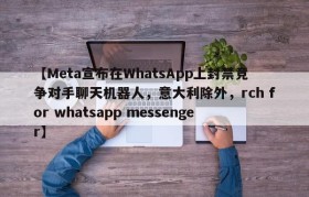 【Meta宣布在WhatsApp上封禁竞争对手聊天机器人,意大利除外,rch for whatsapp messenger】