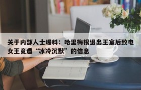 关于内部人士爆料:哈里梅根退出王室后致电女王竟遭“冰冷沉默”的信息