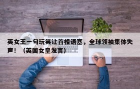 英女王一句玩笑让首相语塞,全球领袖集体失声!(英国女皇发言)