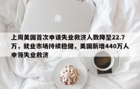 上周美国首次申请失业救济人数降至22.7万,就业市场持续稳健,美国新增440万人申领失业救济