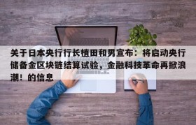 关于日本央行行长植田和男宣布:将启动央行储备金区块链结算试验,金融科技革命再掀浪潮!的信息
