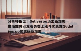 分析师指出:Deliveroo退出新加坡市场或将引发服务费上涨与优惠减少/deliveroo优惠码新加坡