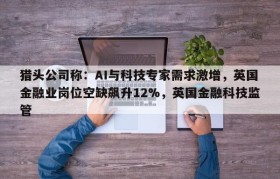 猎头公司称:AI与科技专家需求激增,英国金融业岗位空缺飙升12%,英国金融科技监管