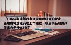 【FDA将取消新药审批需两项研究的规定,新规或将加速药物上市进程,取消药品加成政策出台于什么时候】