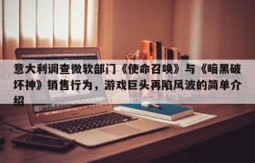 意大利调查微软部门《使命召唤》与《暗黑破坏神》销售行为,游戏巨头再陷风波的简单介绍