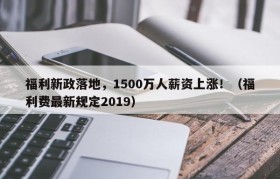 福利新政落地,1500万人薪资上涨!(福利费最新规定2019)