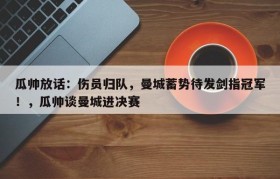 瓜帅放话:伤员归队,曼城蓄势待发剑指冠军!,瓜帅谈曼城进决赛