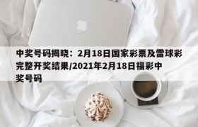 中奖号码揭晓:2月18日国家彩票及雷球彩完整开奖结果/2021年2月18日福彩中奖号码