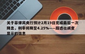 关于菲律宾央行预计2月19日完成最后一次降息,利率将降至4.25%——路透社调查显示的信息