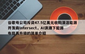 谷歌母公司斥资47.5亿美元收购清洁能源开发商Intersect,AI浪潮下能源布局再升级的简单介绍