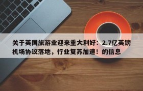 关于英国旅游业迎来重大利好:2.7亿英镑机场协议落地,行业复苏加速!的信息