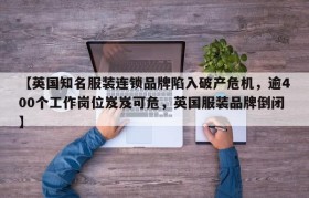 【英国知名服装连锁品牌陷入破产危机,逾400个工作岗位岌岌可危,英国服装品牌倒闭】