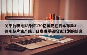 关于台积电拟斥资170亿美元在日本布局3纳米芯片生产线,日媒曝重磅投资计划的信息