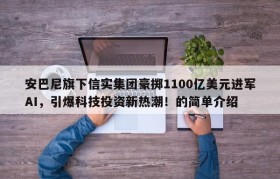 安巴尼旗下信实集团豪掷1100亿美元进军AI,引爆科技投资新热潮!的简单介绍