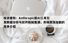 投资者称:Anthropic新AI工具引发数据分析与软件股抛售潮,市场震荡加剧的简单介绍