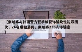 【柬埔寨与韩国警方联手破获诈骗及性犯罪团伙,26名嫌犯落网,柬埔寨235人诈骗案】