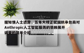 据知情人士透露,五角大楼正就国防承包商对Anthropic人工智能服务的依赖展开调查的简单介绍