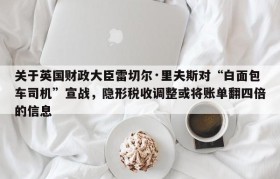 关于英国财政大臣雷切尔·里夫斯对“白面包车司机”宣战,隐形税收调整或将账单翻四倍的信息