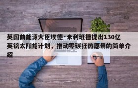 英国前能源大臣埃德·米利班德提出130亿英镑太阳能计划,推动零碳狂热愿景的简单介绍