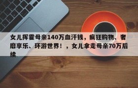 女儿挥霍母亲140万血汗钱,疯狂购物、奢靡享乐、环游世界!,女儿拿走母亲70万后续