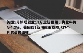 美国1月新增就业13万远超预期,失业率降至4.3%,美国8月新增就业骤降,创7个月来最慢增速