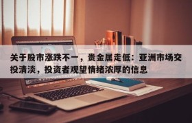 关于股市涨跌不一,贵金属走低:亚洲市场交投清淡,投资者观望情绪浓厚的信息