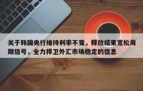 关于韩国央行维持利率不变,释放结束宽松周期信号,全力捍卫外汇市场稳定的信息