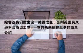 除非议员们做出这一关键改变,否则英国民众绝不会原谅工党——党的未来危在旦夕的简单介绍