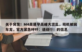 关于突发!M4高速早高峰大混乱,司机被困车龙,官方紧急呼吁:请绕行!的信息