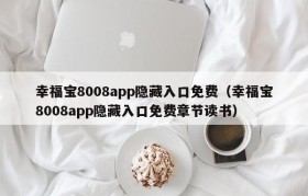 幸福宝8008app隐藏入口免费(幸福宝8008app隐藏入口免费章节读书)