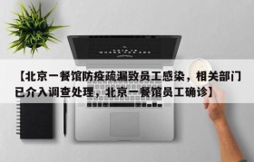 【北京一餐馆防疫疏漏致员工感染,相关部门已介入调查处理,北京一餐馆员工确诊】
