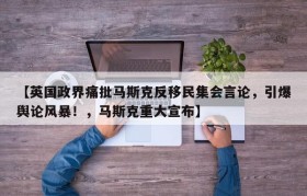【英国政界痛批马斯克反移民集会言论,引爆舆论风暴!,马斯克重大宣布】
