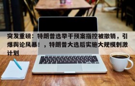 突发重磅:特朗普选举干预案指控被撤销,引爆舆论风暴!,特朗普大选后实施大规模刺激计划