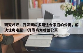 研究呼吁:开发商应多建适合家庭的公寓,解决住房难题!/开发商为啥盖公寓
