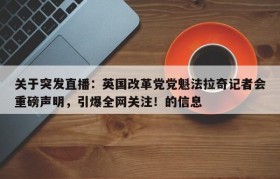 关于突发直播:英国改革党党魁法拉奇记者会重磅声明,引爆全网关注!的信息