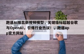 跑道AI推出新视频模型,关键指标超越谷歌与OpenAI,引爆行业热议!,跑道app官方网站