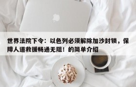 世界法院下令:以色列必须解除加沙封锁,保障人道救援畅通无阻!的简单介绍